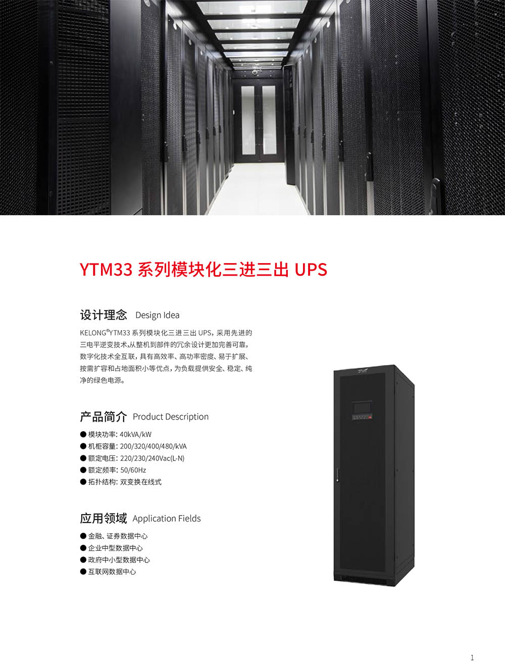 • 模塊化電源YTM33系列三進三出UPS(80-480kVA)