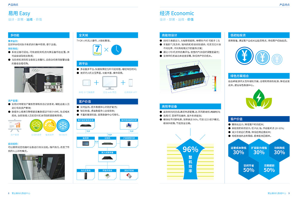 ●高能效的系統設計,低PUE值,節省能耗達20~30%;